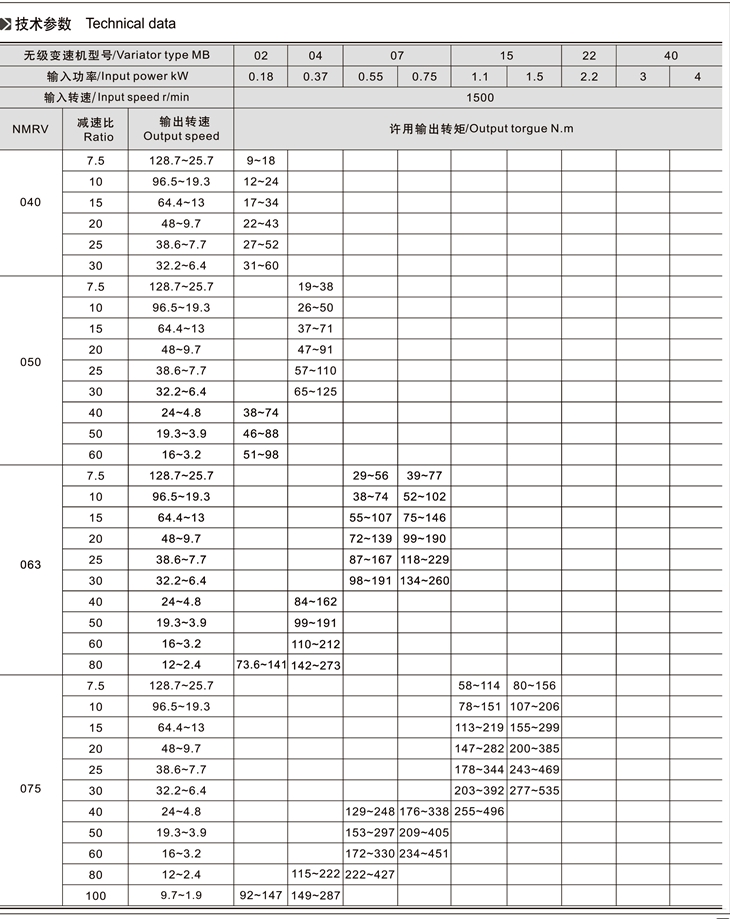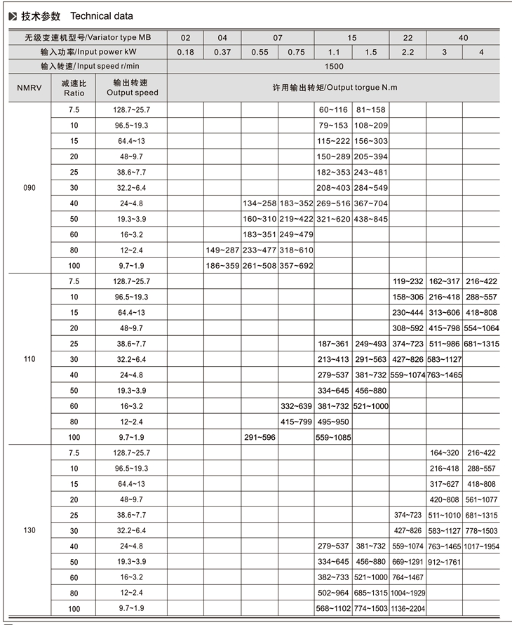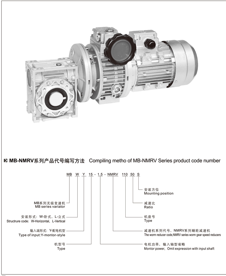 MB-NMRV組合系列無級(jí)變速機(jī)是由MB無級(jí)變速機(jī)與RV蝸輪減速機(jī)完美組合。