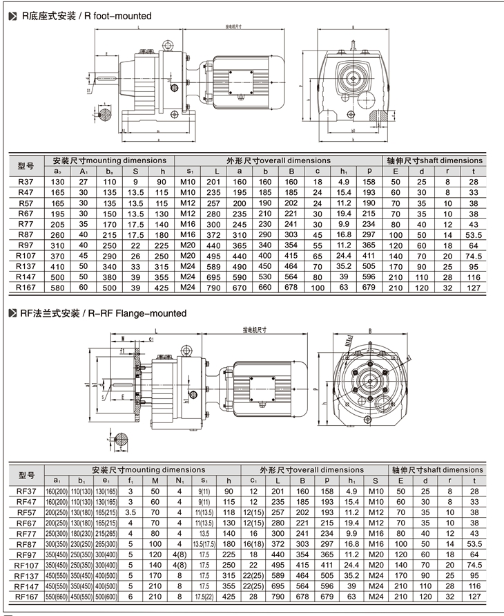 R:軸伸式底腳安裝   RF:法蘭安裝